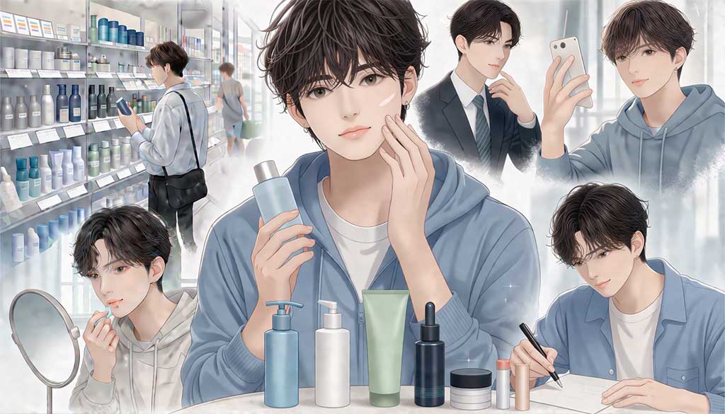男性向け化粧品の市場は広がりつつあり、特に10代後半から20代前半では、肌の手入れを当たり前のこととして取り入れる動きが目立っている。背景にあるのは、SNSや動画配信の影響だ。男性のインフルエンサーやアーティストが、肌の手入れや見た目の整え方を紹介する機会が増えたことで、「男性が化粧品を使うのは特別なことではない」という認識が少しずつ広がってきた。